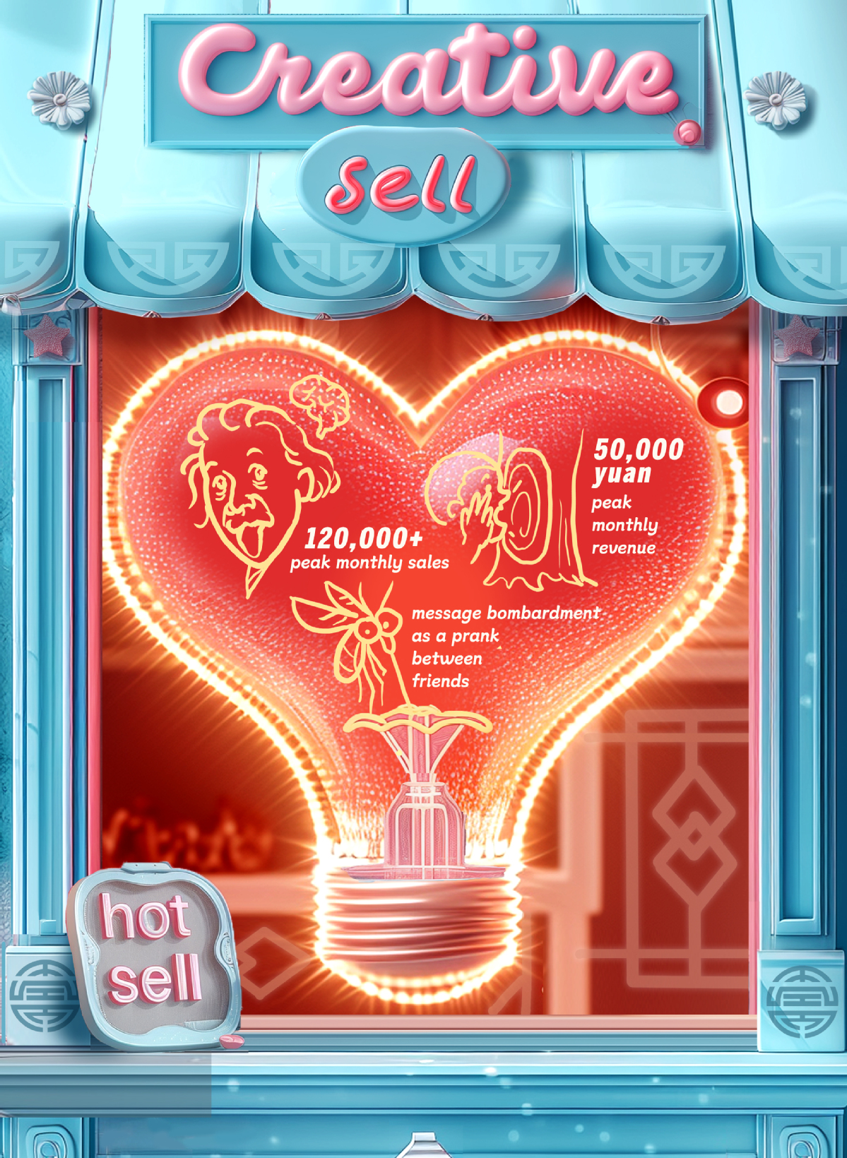 Next came virtual mosquitoes that brought in over a million orders, earning his store the coveted "Taobao Million+" status. Virtual mosquitoes bombard designated social media accounts with immense messages as a form of digital prank on friends.