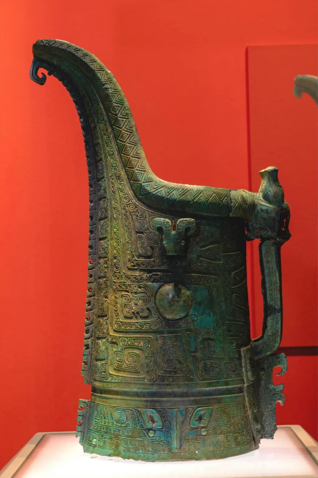 gong (wine container) with beast mask motifs, Shang Dynasty, from the collection of the Center for Archaeological Research and Cultural Relic Protection of Miluo [Photo/Official WeChat account of the Shanxi Museum]