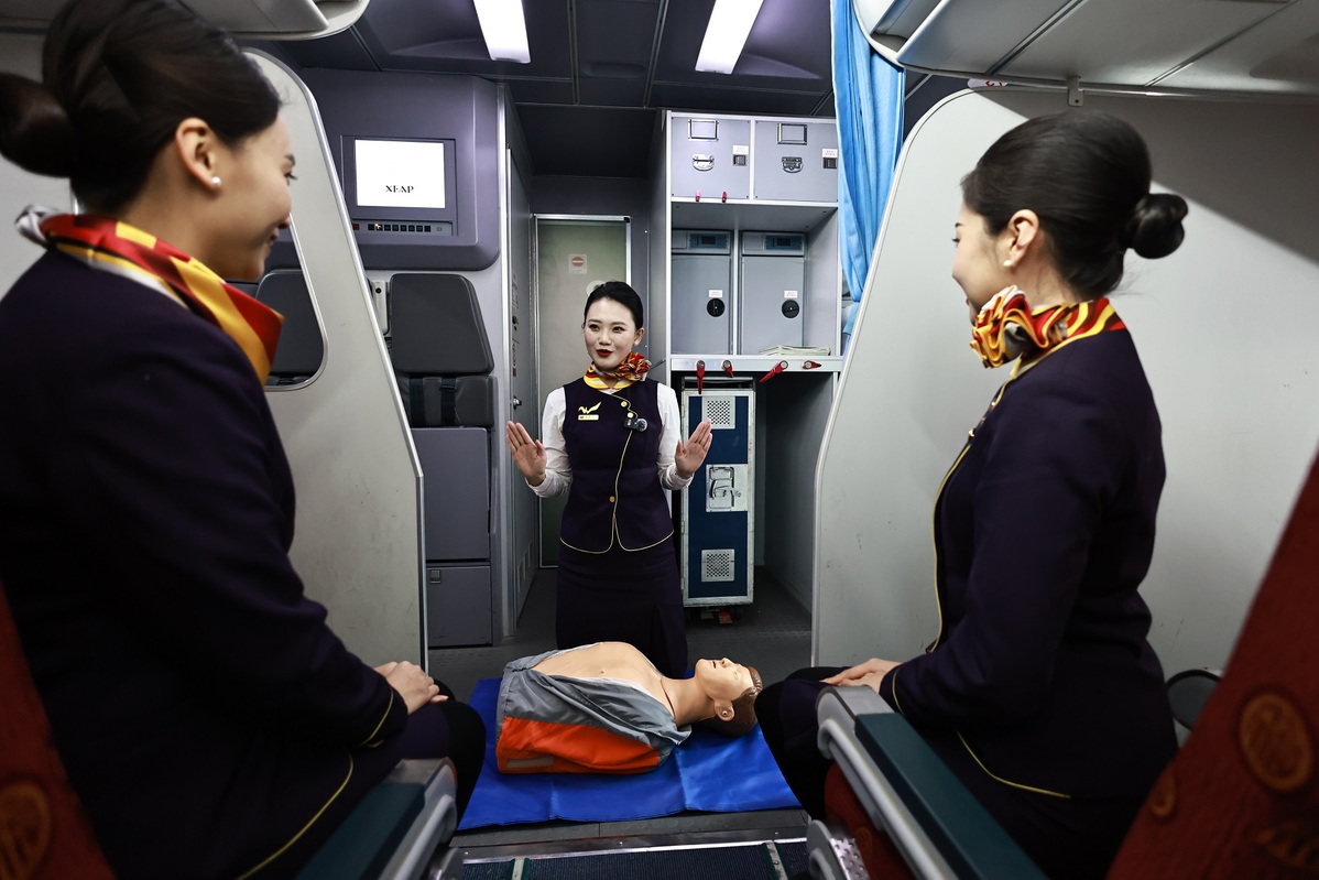 Yet, she never forgot her childhood dream. At the age of 24, after passing through numerous selections and interviews, she joined West Air, an airline based in Chongqing, as a flight attendant. "Actually, at that time, I was no longer at an advantage due to my age. However, my medical experience gave me an edge," she said. Recalling this challenging transition, Pan said that everything worked out for the best.