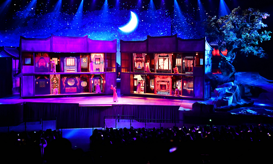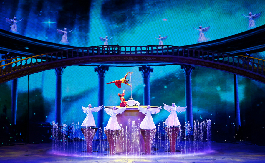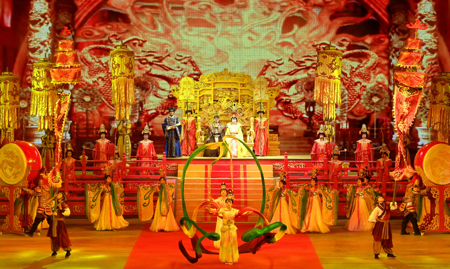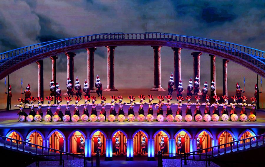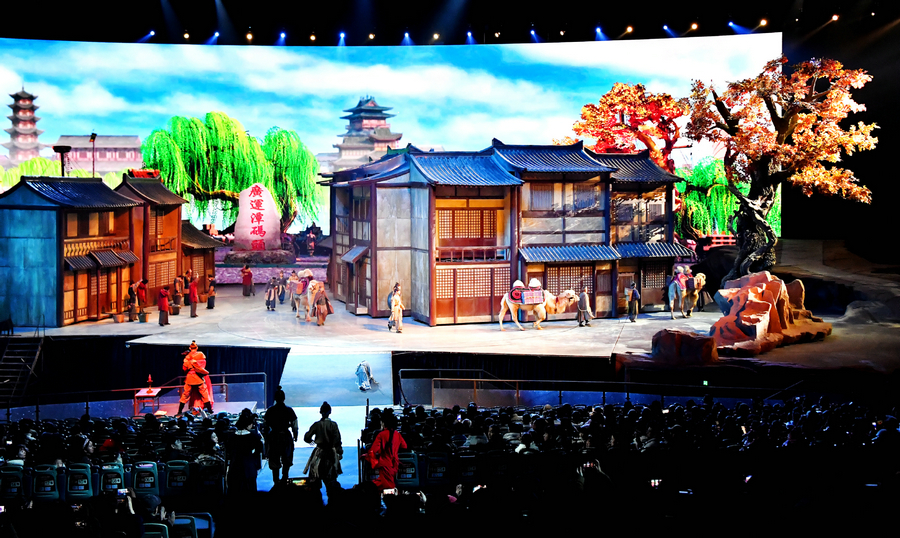 The live-action performance Legend of the Camel Bell is staged in Xi'an, Northwest China's Shaanxi Province, Feb 11, 2024. [Photo/xinhua]