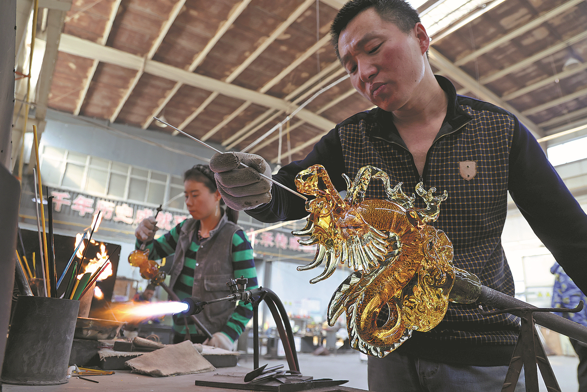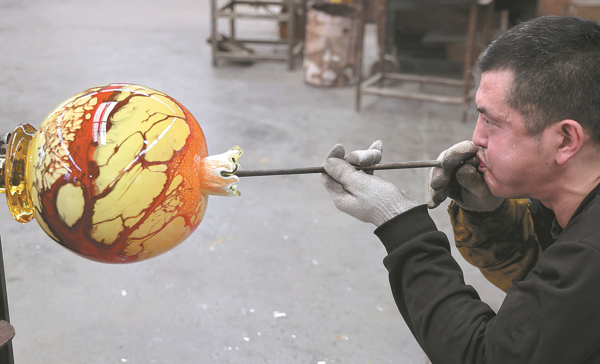 Glass art is a precious cultural heritage in Zibo's history and a vibrant calling card for the city in East China's Shandong province. "World-class glass art is found in China, and the best of China's glass art is in Boshan," referring to the exquisite, delicate, and subtle nature of Boshan's glass art in Zibo, which uses similar materials to create glass that looks like pearls and jade, with colors like flowing clouds. In 2008, the craft of glassblowing was listed on the National Intangible Cultural Heritage List.