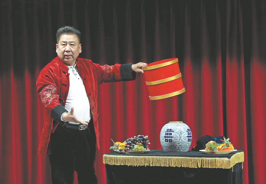Traditional temple fairs are where people pray for good luck for the new year and have fun with their families, he added. "As a performer, I love seeing children riding on their parents' shoulders, holding a windmill toy in one hand and a tanghulu (candied haws on a stick) in another hand."