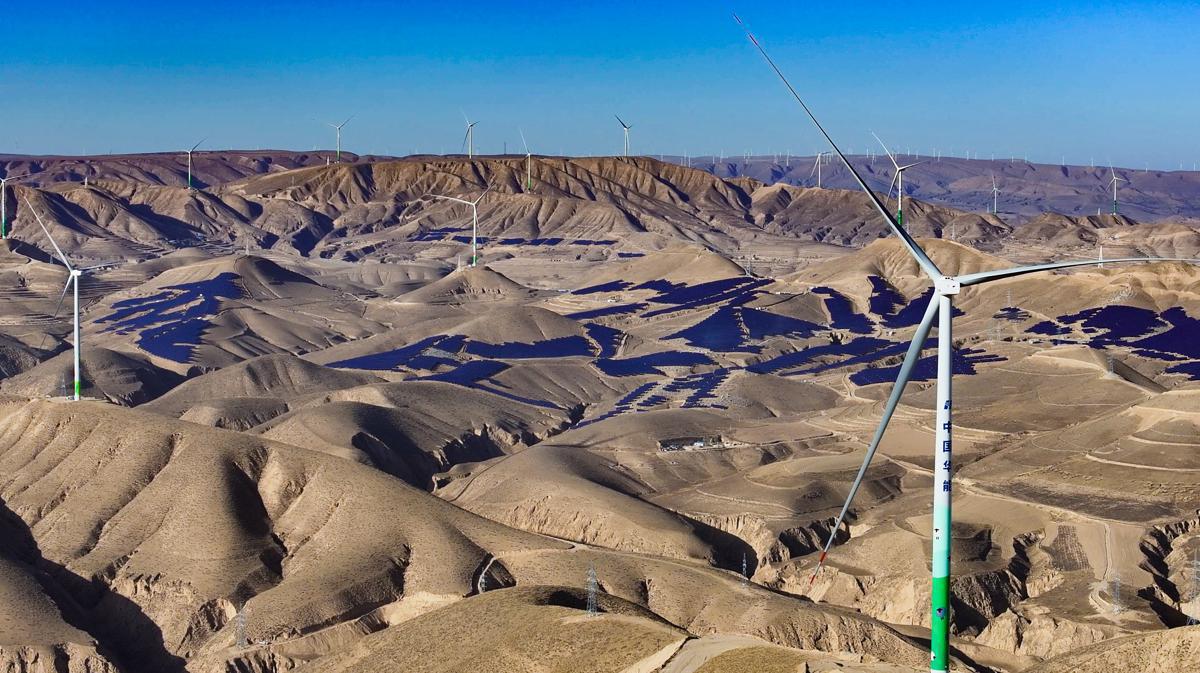 The one million kilowatt wind and solar power project in Huanxian county of Qingyang city, Gansu province has begun generating power. [Photo by Yao Feng/For chinadaily.com.cn]