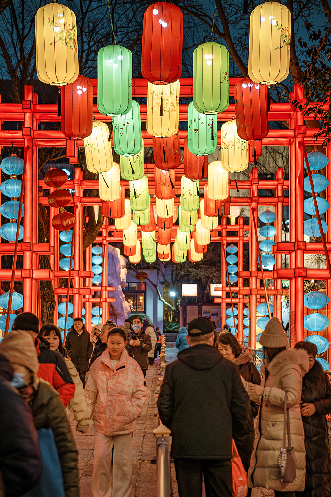 Visitors enjoy festive lanterns at Baotu Spring Park in Jinan, Shandong province on Feb 19, 2024. [Photo/VCG]