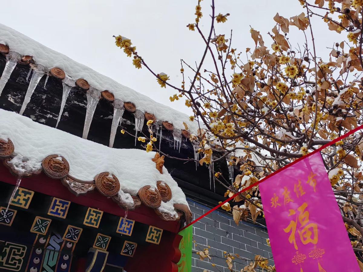A century-old wintersweet tree in Luquan district, Shijiazhuang, Hebei province, after two days of snowfall. [Photo by Feng Zhaokun/For chinadaily.com.cn]