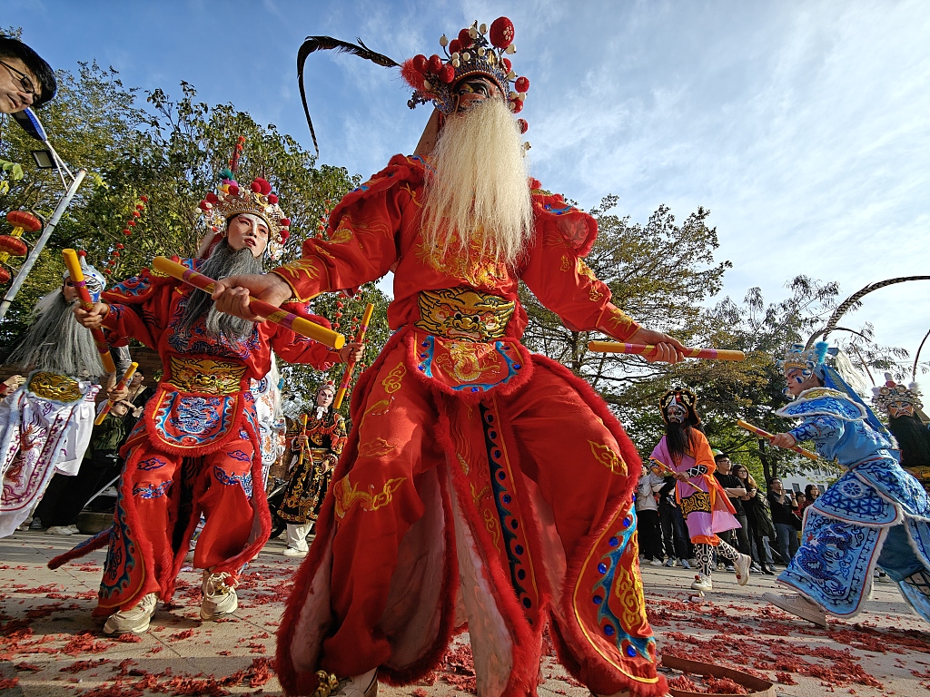 The Yingge Dance is a kind of Chinese folk dance merging opera, drama and martial arts, and a national intangible cultural heritage. Flourishing in the Chaozhou-Shantou region in Guangdong province, its narratives are inspired by local customs and the classic novel Water Margin.
