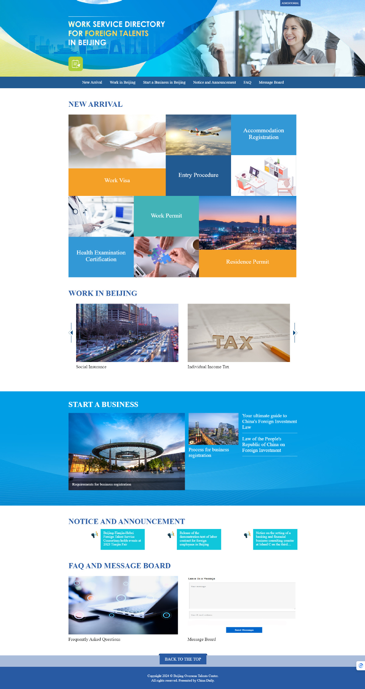 "Work Service Directory for Foreign Talents in Beijing" web page [Photo/chinadaily.com.cn]