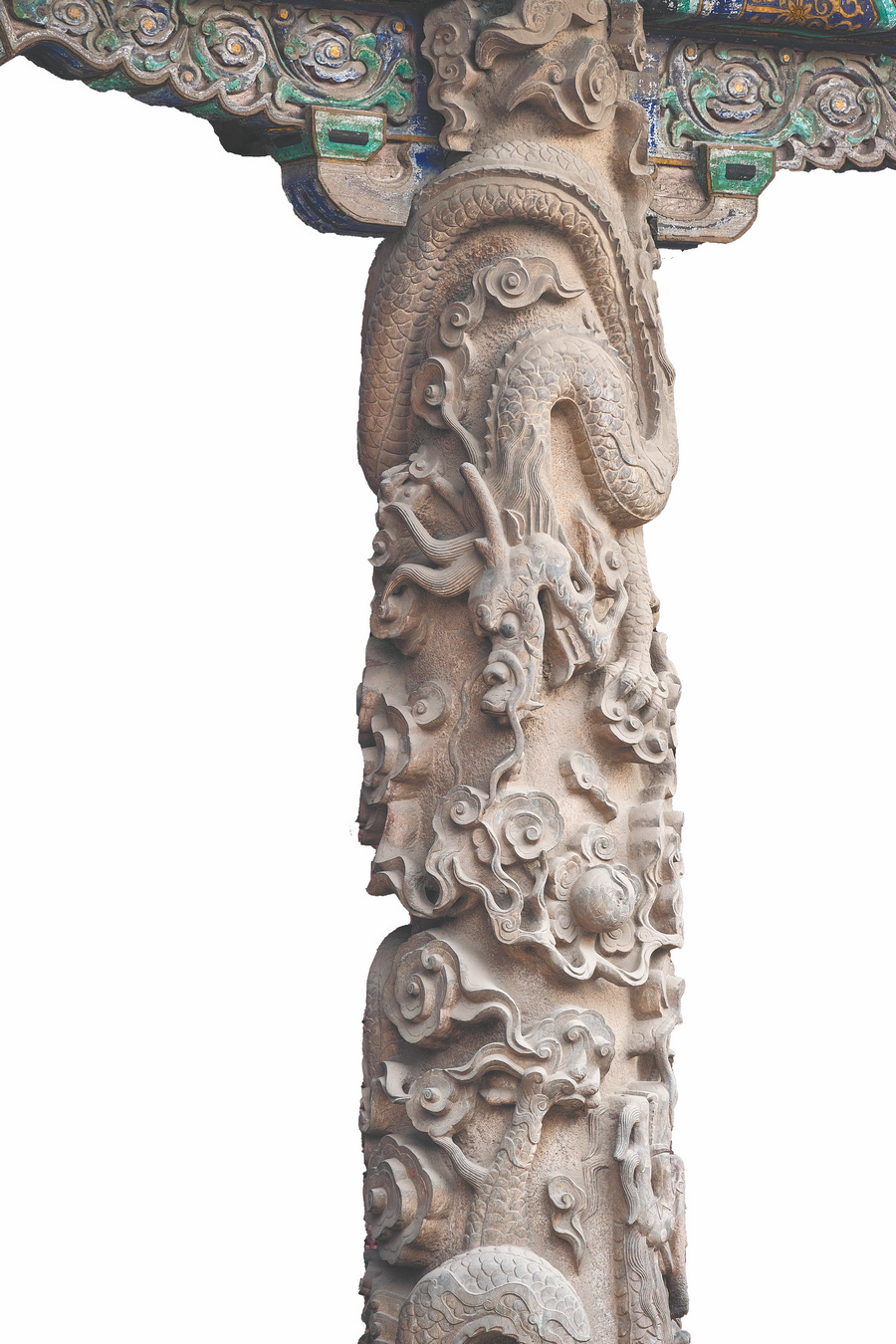 The columns are wrapped in the scaled, sinuous bodies of majestic dragons, half-hidden in clouds. Manes billowing and eyes glistening with intensity, they are there to watch over the sacred place and to ensure the social order as envisioned by the master philosopher.