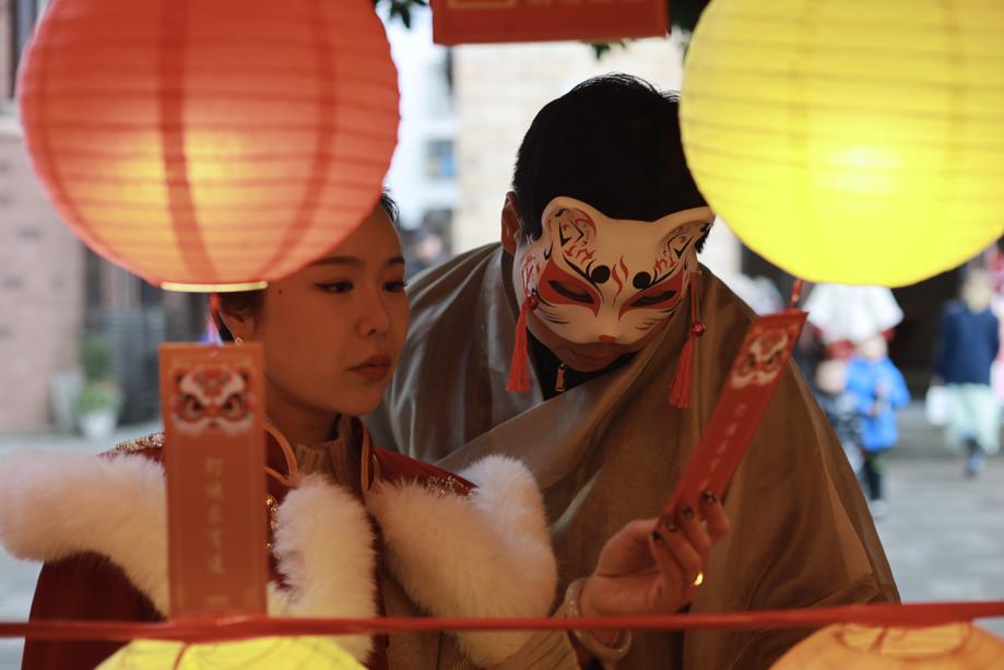 The group took part in a many activities, such as making sweet glutinous rice balls known as "yuanxiao," solving riddles, and making lanterns dressed in hanfu, which is traditional Chinese-style clothing.