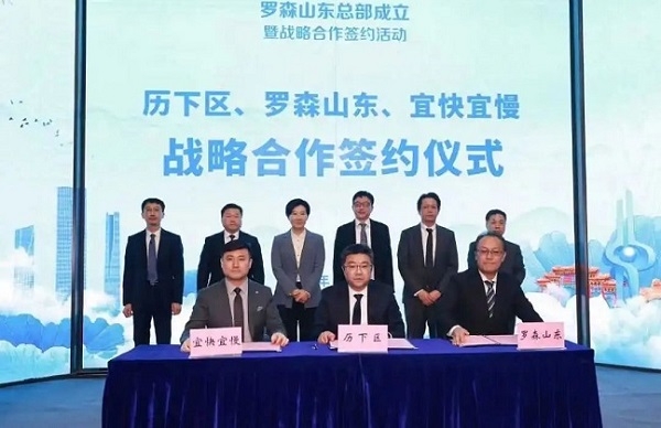 An agreement signing ceremony between Lawson, the world's second-largest retail chain, the Lixia district government, and Yikuai Yiman Mart, a local convenience brand, was held in Jinan on Feb 22.