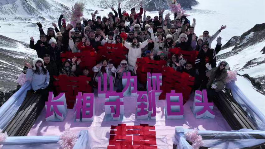 An event themed "Declaration of Love" was held on Saturday, the day of the Lantern Festival, at the Changbai Mountain scenic area in Jilin province, attracting 50 young couples from across the country. [Photo by Shao Zixuan/For chinadaily.com.cn]