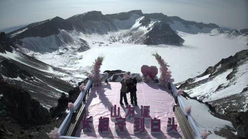 An event themed "Declaration of Love" was held on Saturday, the day of the Lantern Festival, at the Changbai Mountain scenic area in Jilin province, attracting 50 young couples from across the country. [Photo by Shao Zixuan/For chinadaily.com.cn]