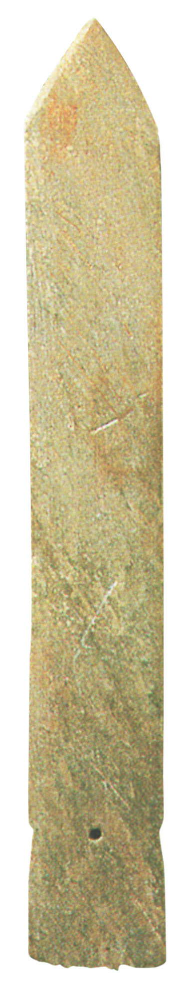 On top of these four, the Zhou people added another two: gui and zhang, the shape of which indicated that both had developed from weaponry. "The symbolic significance of the jade gui and zhang attested to the ascending role of an army in a society, as that society became a powerful state," says Zuo.