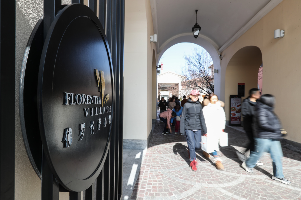 People walk at Florentia Village, an outlet plaza owned by RDM Asia, in Tianjin on Feb 29, 2024. [Photo/Xinhua]