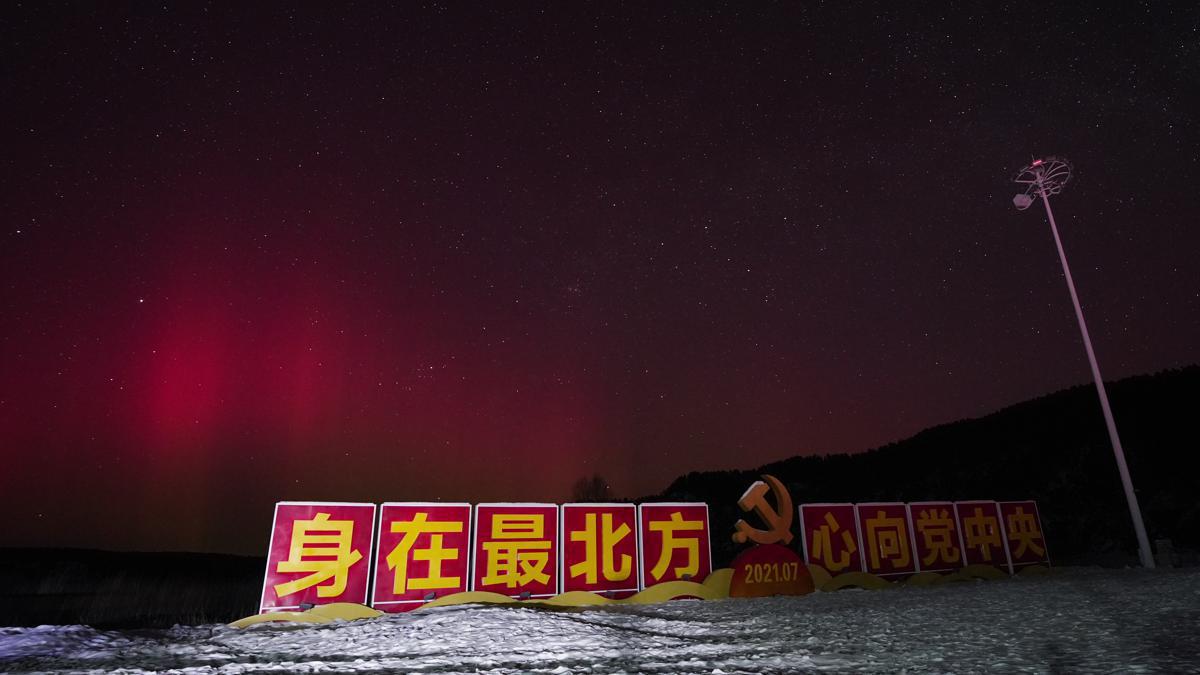 The aurora borealis lights the sky in Mohe, Heilongjiang province, China's northernmost city, early on Monday. [Photo provided to chinadaily.com.cn]