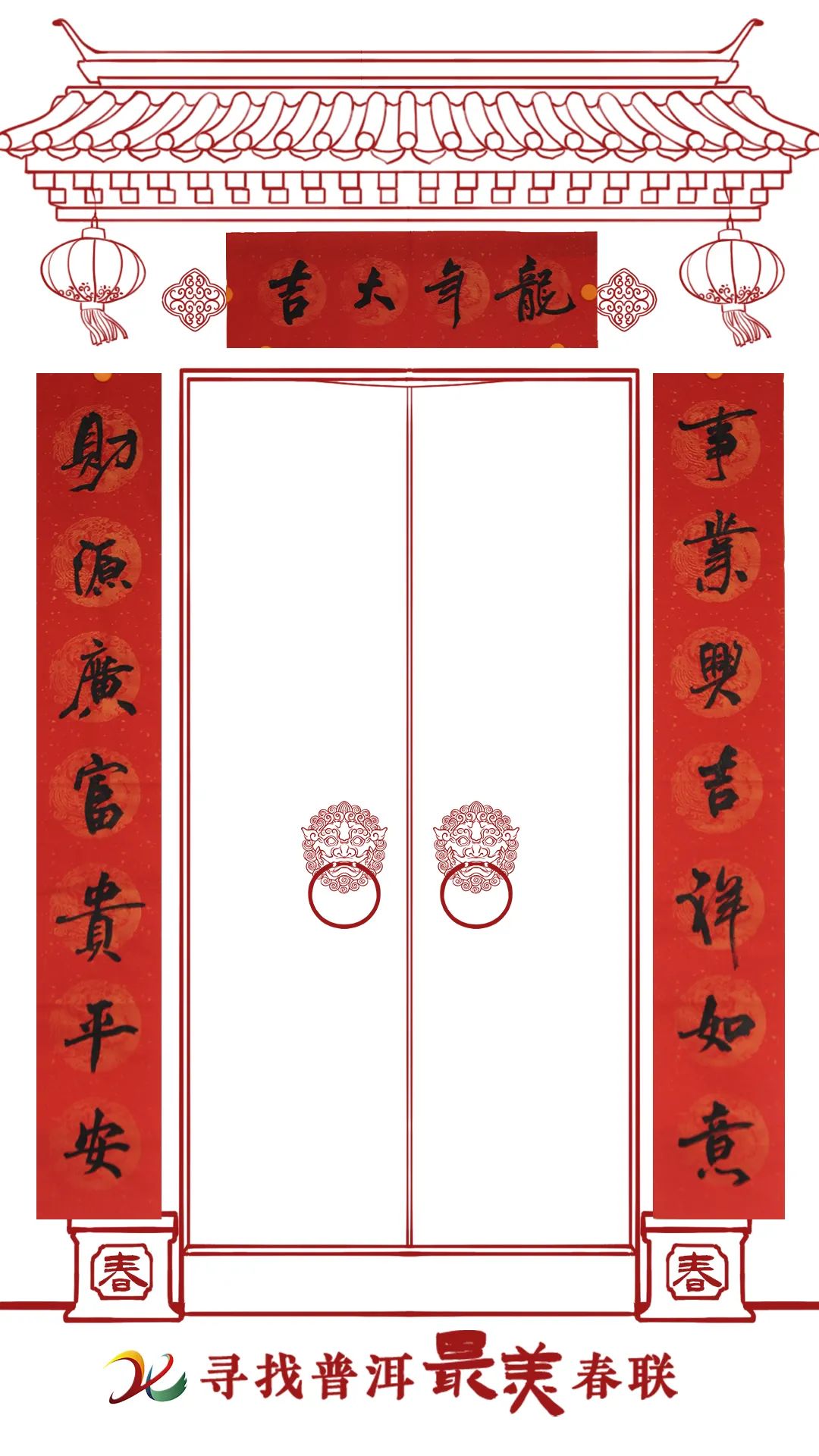 Embrace the auspicious Year of the Dragon with this uplifting Spring Festival couplet written by Luo Yunchun! The first line, “事业兴吉祥如意”, means “May you flourish in your career with good luck and auspiciousness”, and the second line, “财源广富贵平安”, means “May you enjoy wealth, prosperity and peace”. The horizontal scroll, “龙年大吉”, summarizes the wonderful blessings expressed in the two lines into “Fortune in the Year of the Dragon”. Crafted in semi-cursive script (known as “Xingshu” in Chinese), the couplet conveys hopes for success in career pursuits and personal well-being.