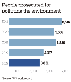 Chinese prosecutors accused 3,831 people of polluting the environment in 2023, a decrease of 11.3 percent year-on-year. They also initiated 84,000 public-interest lawsuits to supervise environmental administrations to better perform duties, according to the SPP report.