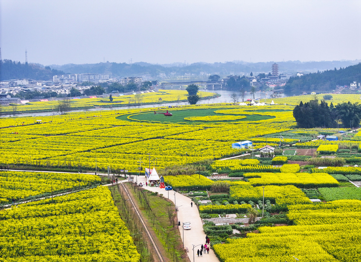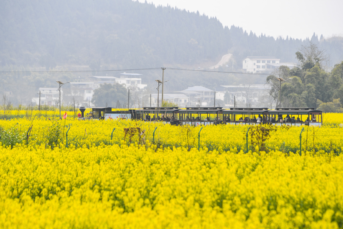 In Chongqing's Tongnan district, 20,000 hectares of rapeseed flowers are in bloom. Recognized in 2022 as a national-level rapeseed breeding area, Tongnan leverages its rapeseed flower economy to boost farmers' income and rural revitalization through integrated agriculture and tourism.