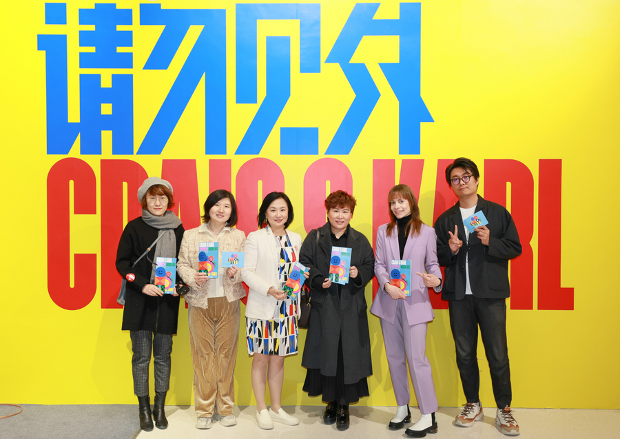 Guests pose for a group photo at the opening ceremony of Inside Out, Australian artist duo Craig & Karl’s first museum solo exhibition in China at the Beijing Times Art Museum, on March 8, 2024. [Photo provided to chinadaily.com.cn]