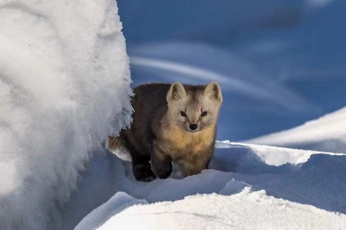 A wild sable stands in snow in the forest around Laolike Lake in Yanbian Korean autonomous prefecture, Jilin province. [Photo provided to chinadaily.com.cn]