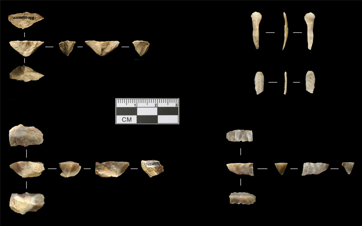 Boat-formed lithic cores unearthed from the Shuiquanyu site [Photo provided to chinadaily.com.cn]