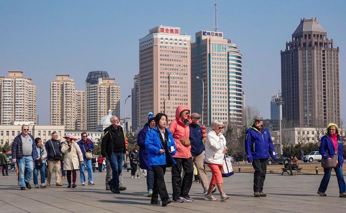 International tourists walk around Dalian, Liaoning province, on Sunday. [Photo by Wang Hua/For chinadaily.com.cn]