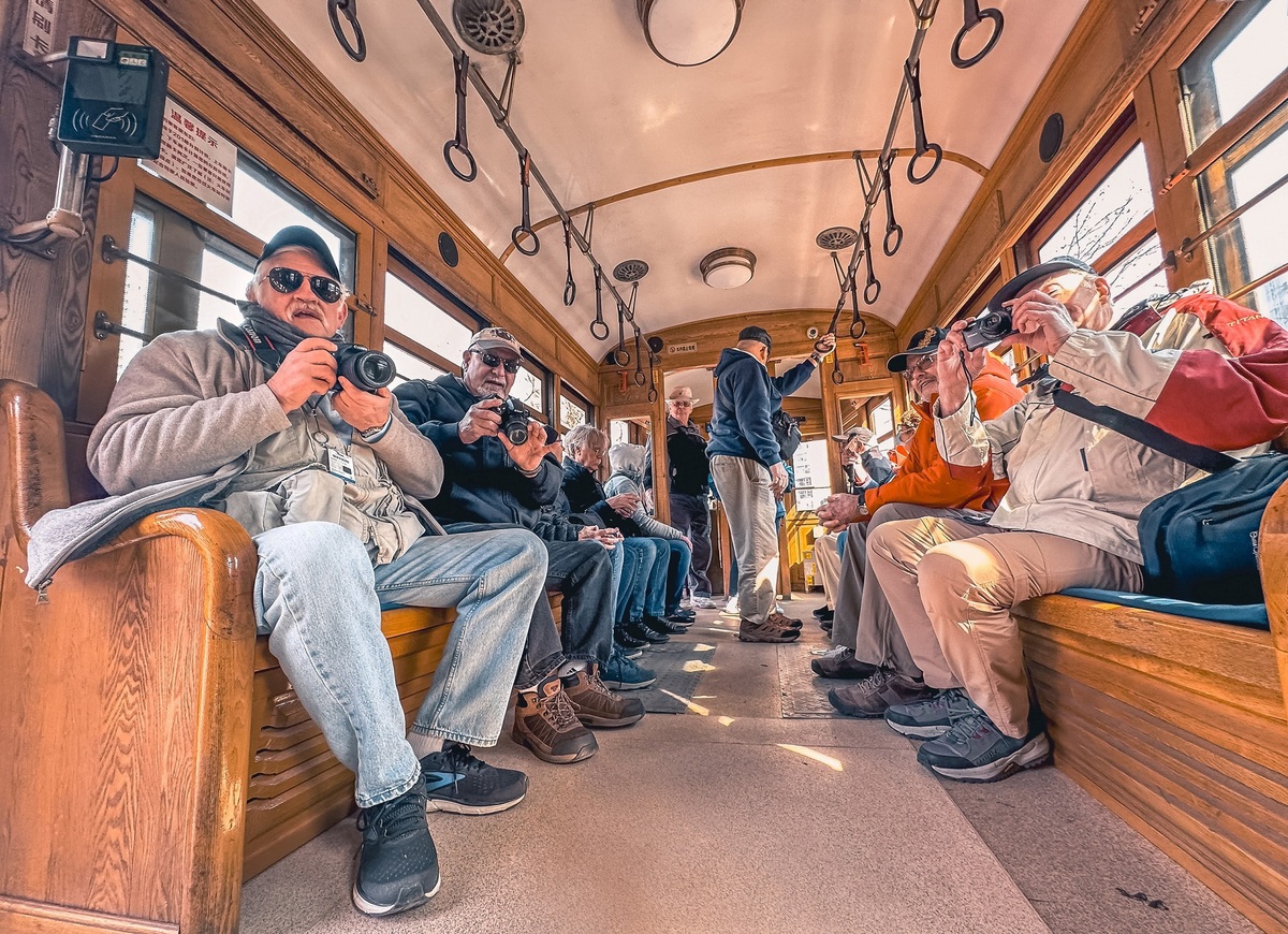 International tourists ride a tram in Dalian, Liaoning province, on Sunday. [Photo by Zhong Qigang/For chinadaily.com.cn]