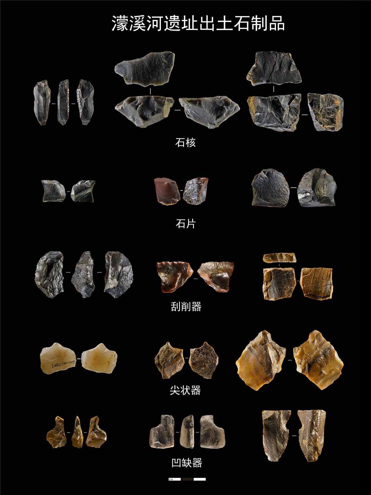 Stone artifacts unearthed from the Mengxihe site [Photo provided to chinadaily.com.cn]
