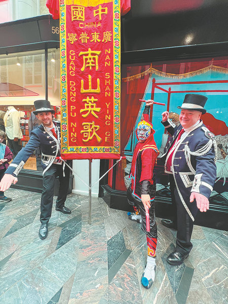 Participation from young dancers is welcomed. Since 2017, Chen Laifa has assisted Nanshan Primary School in setting up and running a voluntary Yingge dance-learning program, and gifted students are included in his team. While the delegation to London performed in the UK on Feb 11, the junior troupe, which has grown into a group of qualified dancers, also took over in downtown Puning.