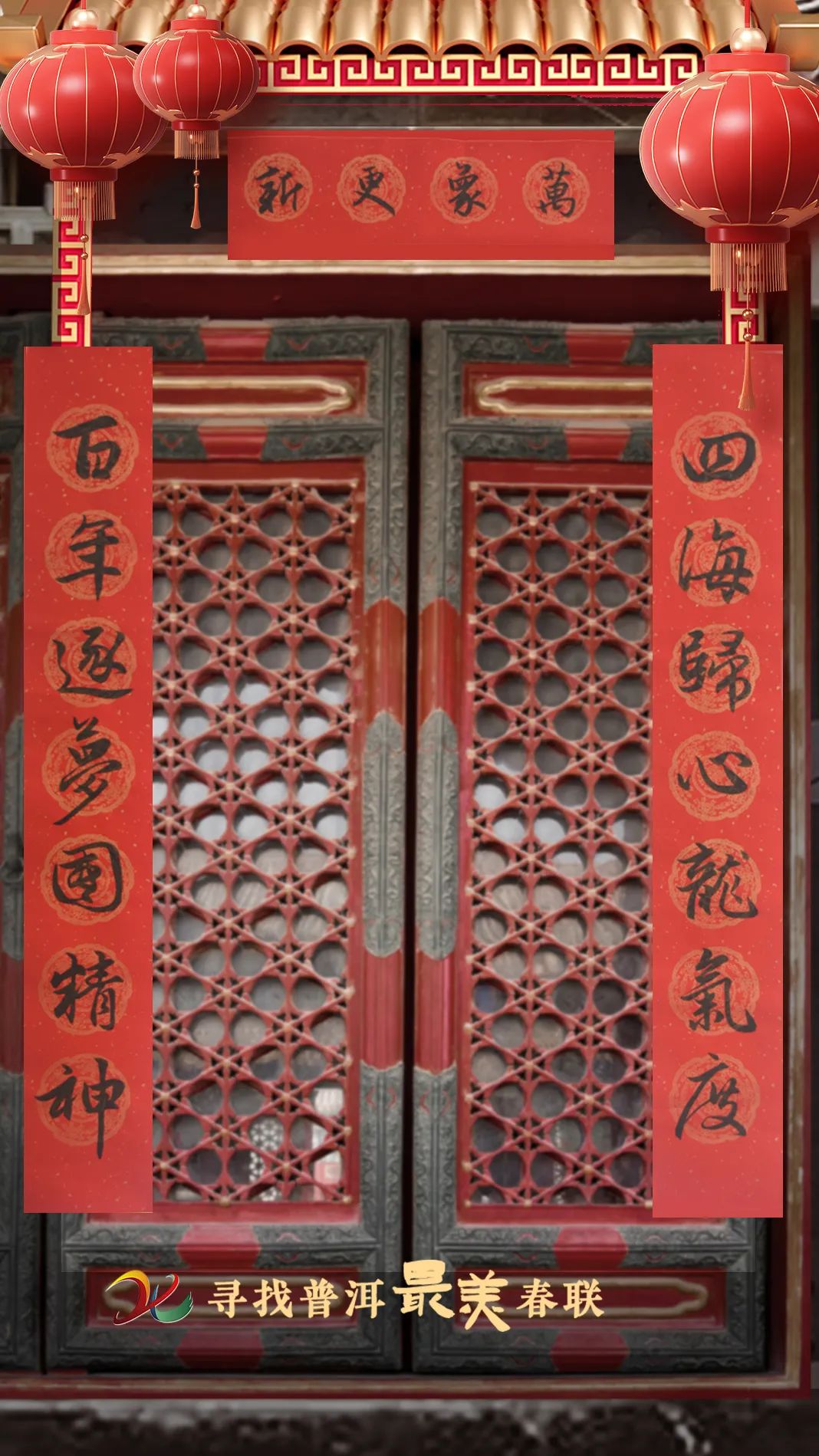 Embrace the dawn of a new era with this inspiring Spring Festival couplet written by Yang Xiaoxia! Its first line, “四海归心龙气度”, means “The demeanor of the dragon unites the hearts of all peoples”. The second line, “百年筑梦国精神”, reads “The centenary pursuit of the Chinese Dream signifies the nation's enduring spirit and willpower”. The horizontal scroll, “万象更新”, means “Renewal of everything”. Written in semi-cursive script, the couplet emphasizes the unity of the Chinese people in pursuing the Chinese dream of national rejuvenation and building a community with a shared future for mankind.