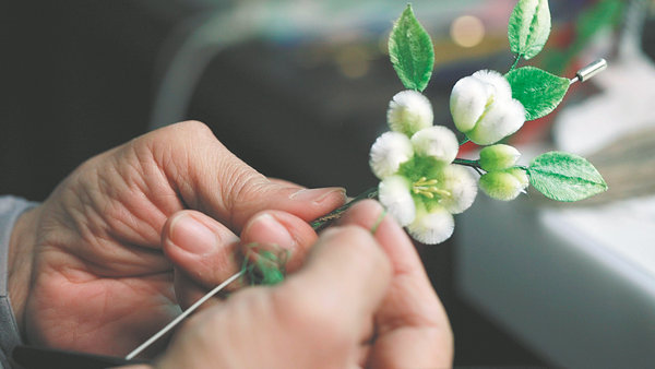Today, he has a studio of his own, as well as a company that designs and manufactures velvet flowers. It is located in a room just over 10 square meters in size at the Nanjing Folk Museum and Intangible Cultural Heritage Museum, which is not far from the old flower market and the bustling Qinhuai River scenic area.