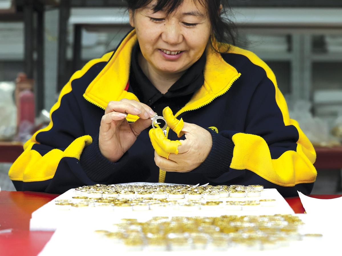 In Chang'an town - a manufacturing cradle with more than 7,000 jewelry factories manned by over 100,000 workers - some firms have set their sights on the domestic market because of the slump in overseas orders. "Domestic sales have grown remarkably, fueled by livestreaming platforms, such as Douyin," says Leng Yijun, president of the Dongguan Jewelry and Ornament Association.