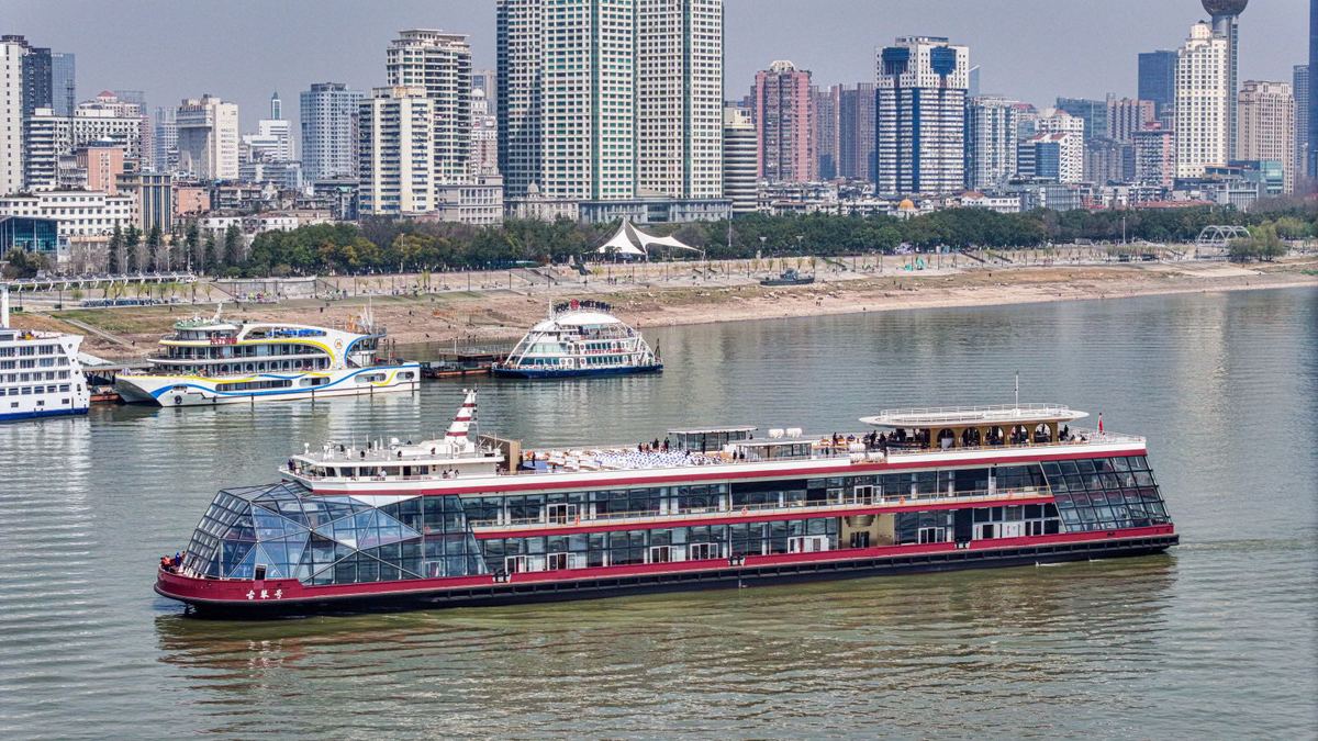 A cruise ship named “Guqin” embarked on its maiden voyage on March 20, opening a new chapter for Wuhan’s cultural tourism. With a length of 119 meters and three decks, the ship offers a unique experience with its 360-degree panoramic glass walls, and provides passengers with an unparalleled view of the stunning scenery along the Yangtze River. The ship can accommodate up to 1,000 people for leisure, entertainment, and dining, offering a space for music, delicious food, and scenic enjoyment. Don't miss this chance to explore the beauty of Wuhan's riverside!
