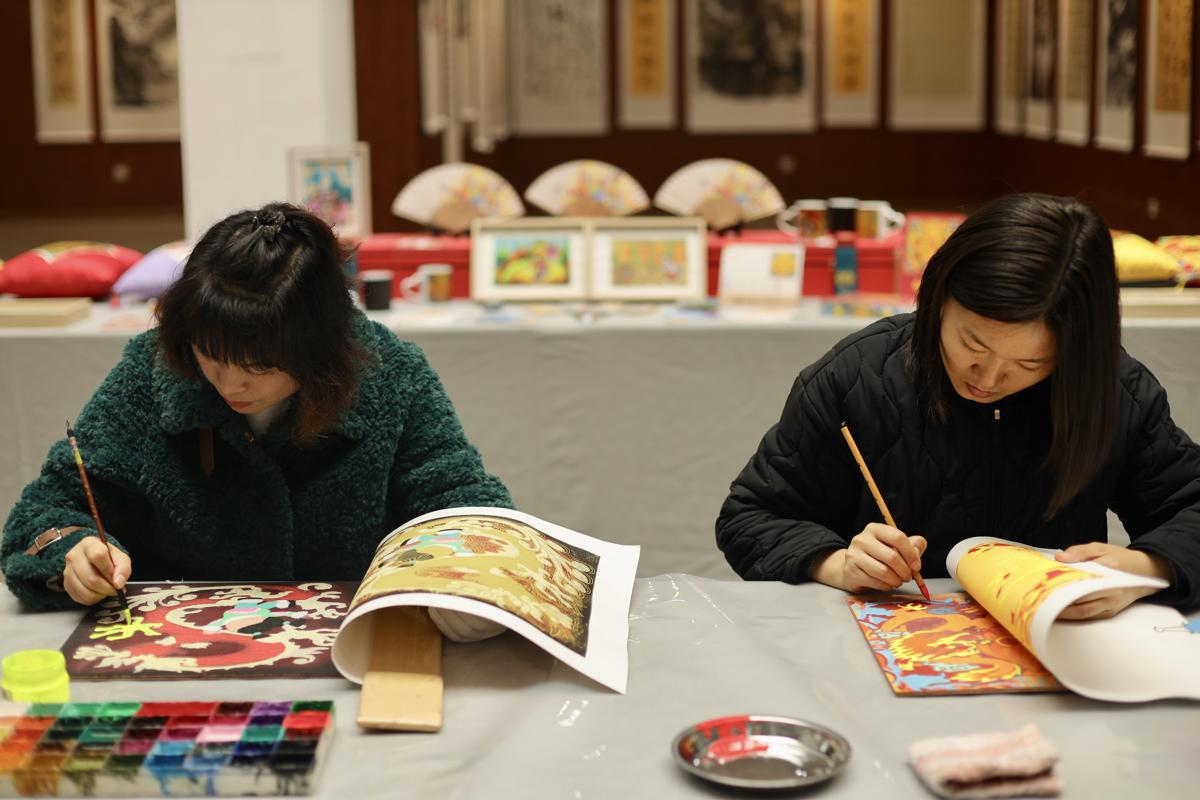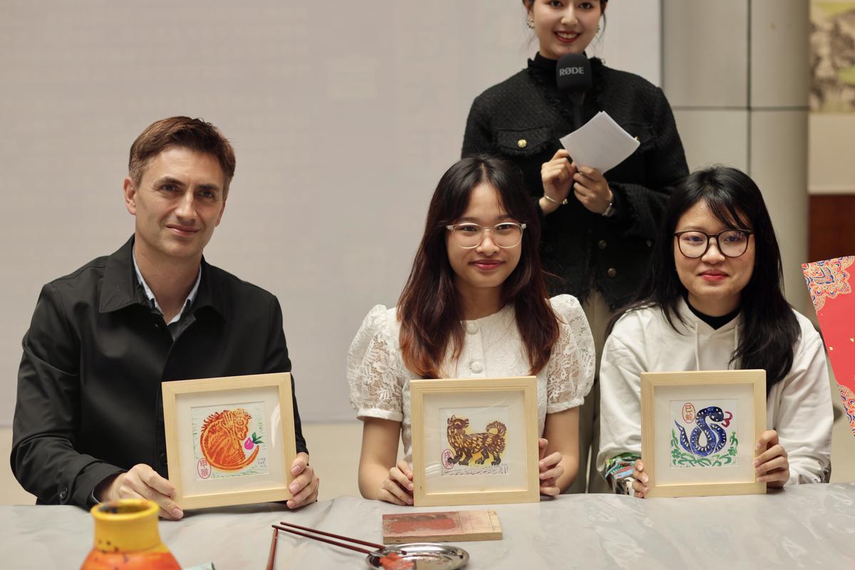 On Wednesday, a group of visitors, including two international students from Laos, visited the Qijiang Farmers' Printmaking Institute in Chongqing's Qijiang district to learn how to make Qijiang farmers' print — an intangible cultural heritage of the city.