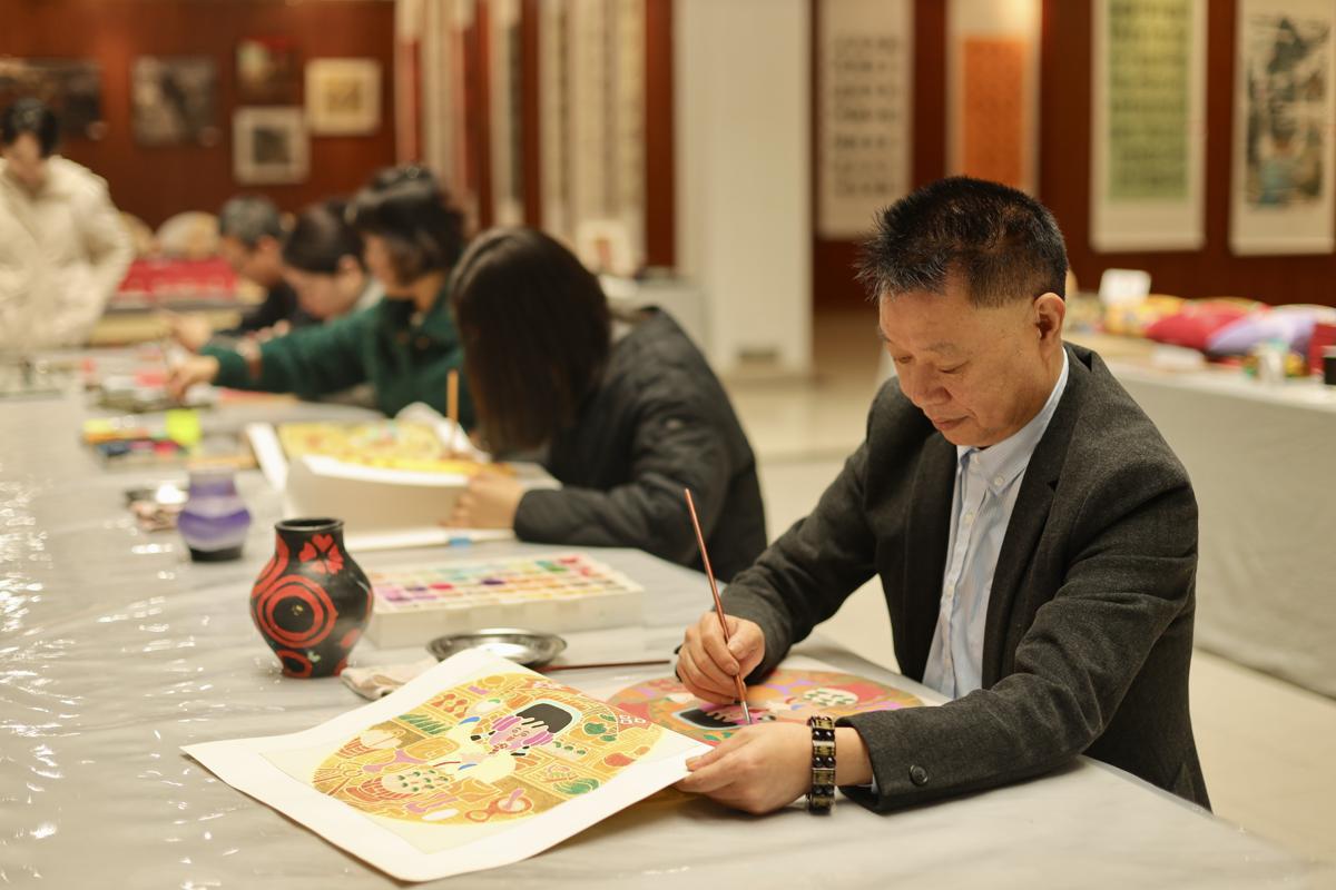 Artists make Qijiang farmers' prints — an intangible cultural heritage of Chongqing — at the Qijiang Farmers' Printmaking Institute in Chongqing's Qijiang district. [Photo by Deng Rui/For chinadaily.com.cn]