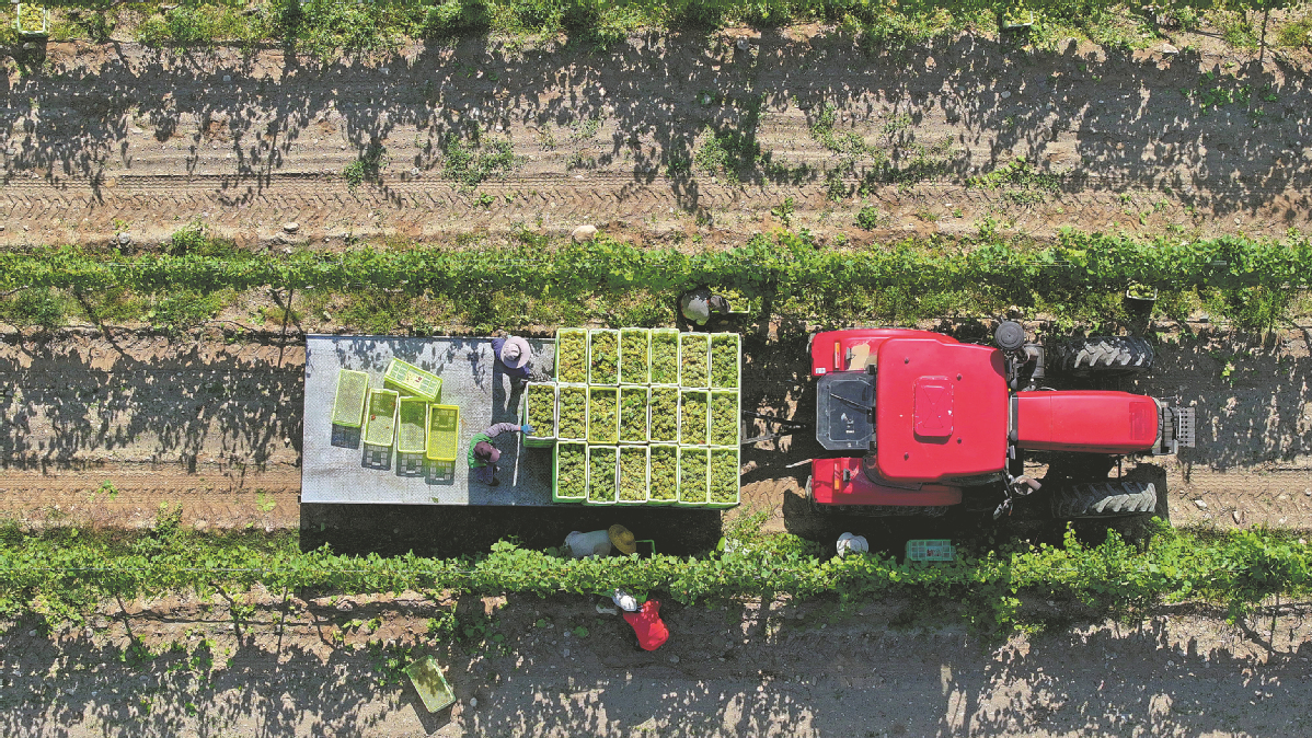 A truck transports grapes from an orchard of Yuanshi Vineyard in Yinchuan, Ningxia Hui autonomous region, in September. WANG PENG/XINHUA