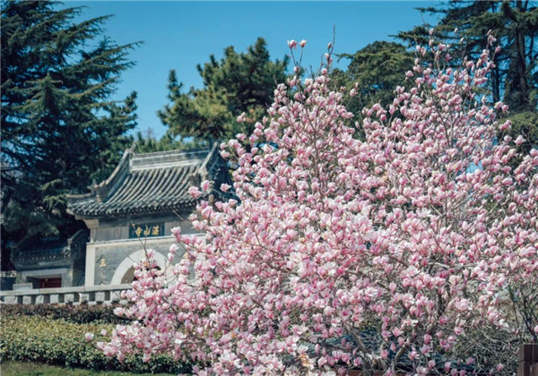 Blooming magnolias exude a lazy elegance. The abundant flowers grow upwards, resembling jade ornaments on branches and creating a picturesque and poetic scene. [Photo/WeChat account: qd12301]