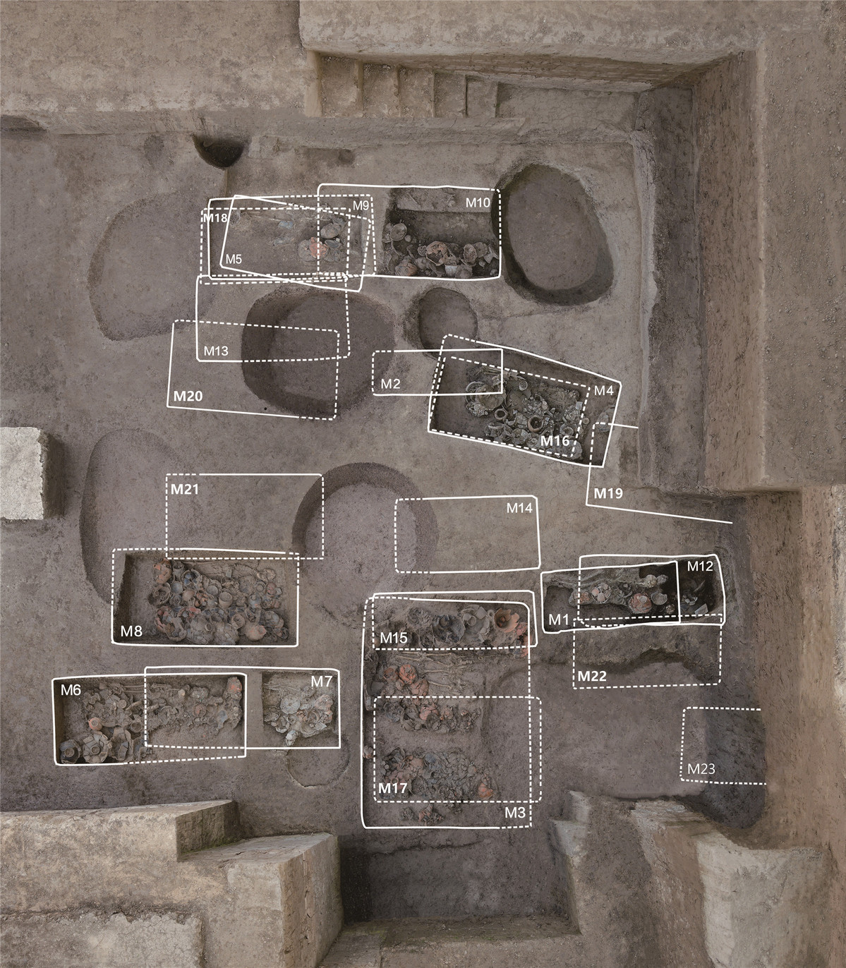 The plan view of the Dawenkou Culture cemetery in zone IV of the Wangzhuang site [Photo provided to chinadaily.com.cn]