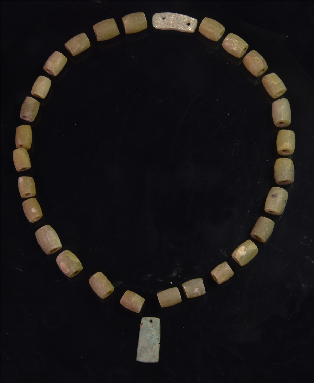A jade necklace unearthed from the Dawenkou Culture cemetery of Wangzhuang site [Photo provided to chinadaily.com.cn]