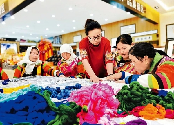 To help women villagers earn a living by making embroideries, Su has provided training to women who have not learned Pan embroidery before. Dong Guolan, from a remote township in Huzhu, was one of the trainees. Dong learned to embroider from scratch. At the beginning, the quality of her embroideries was below standard. Even though the embroideries could not be sold to customers, Su still purchased them at the normal price. Dong was deeply moved by Su's kind heart. To improve her embroidering skills, Dong practiced all day and all night — every day. She completed an exquisite embroidery half a month later. Given her efforts, she became a professional embroiderer, and she has used her fingertips to achieve prosperity.