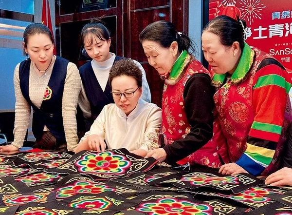 Su Xiaoli, general manager of an embroidery company in Huzhu Tu autonomous county, in Haidong, a city in Northwest China's Qinghai province, is an inheritor of Pan embroidery, a traditional Tu-style embroidery.