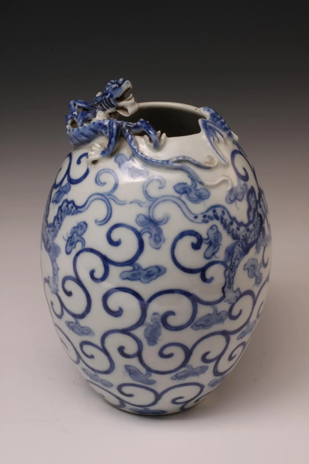 Blue-and-white jar decorated with dragon and cloud motifs, Guangxu reign (1875-1908) of the Qing Dynasty, from the collection of the Shandong Museum [Photo/Official WeChat account of the Shandong Museum]