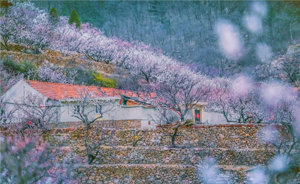 As the spring breeze brings warmth and cherry blossoms bloom, Dahedong village in Laoshan district, Qingdao, becomes a safe haven from the troubles of the world. [Photo/WeChat account: qd12301]