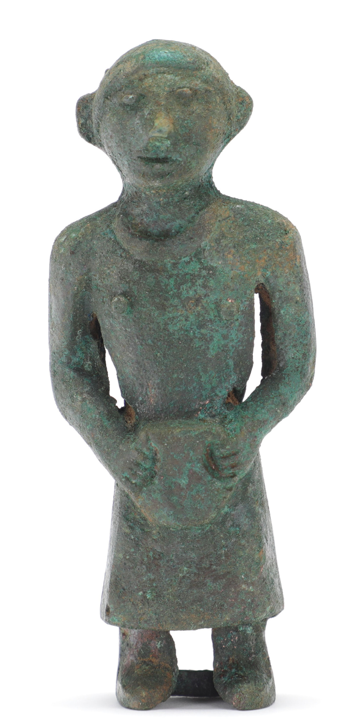 Bronze standing figure unearthed at Laolongtou cemetery [Photo provided to chinadaily.com.cn]