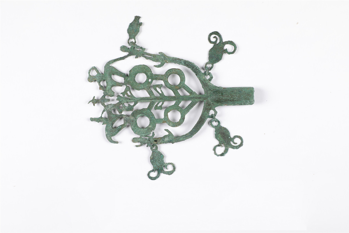 Branch-formed bronze artifact unearthed at Laolongtou cemetery [Photo provided to chinadaily.com.cn]