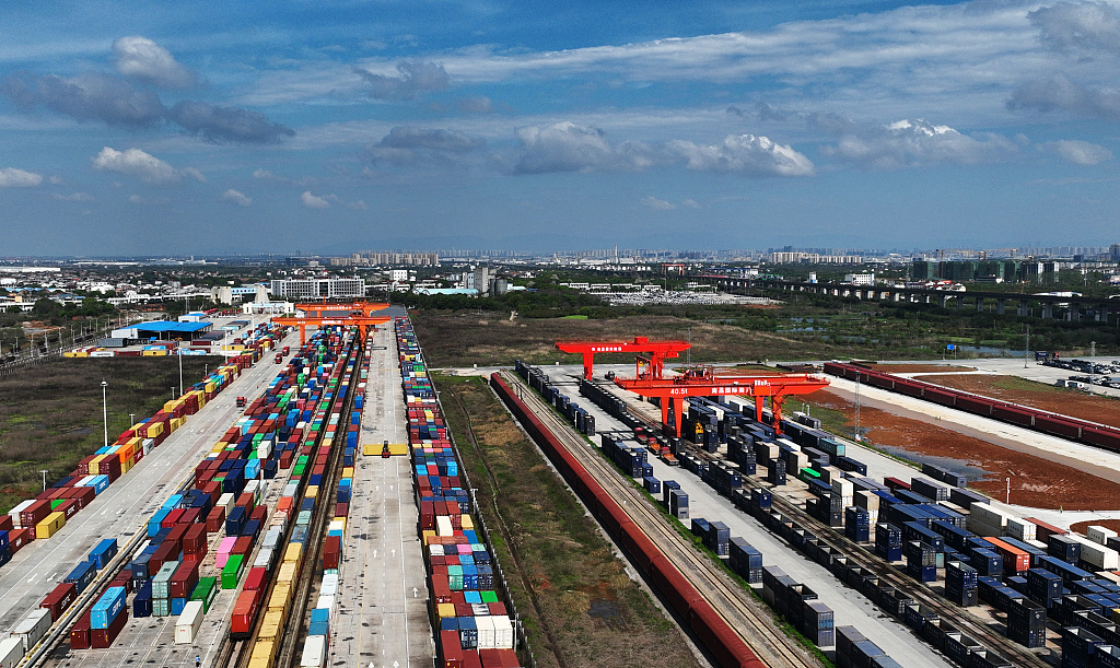 An aerial view of the Nanchang International Land Port, East China's Jiangxi province is seen on March 31, 2024. [Photo/VCG]