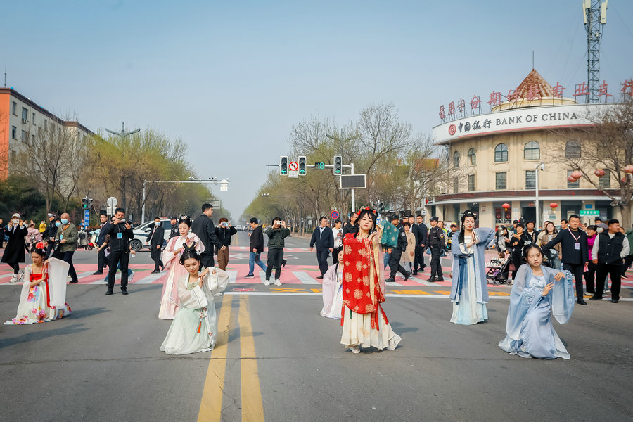 Wu Erchuan, the general director of the festival, said: "This year, in our comprehensive planning, we have integrated performances and immersive experiences. Through immersive settings and narrative-driven content along our cherry blossom avenue, we aim to captivate the aesthetic preferences of today's youth and promote the cultural heritage of Hebi."