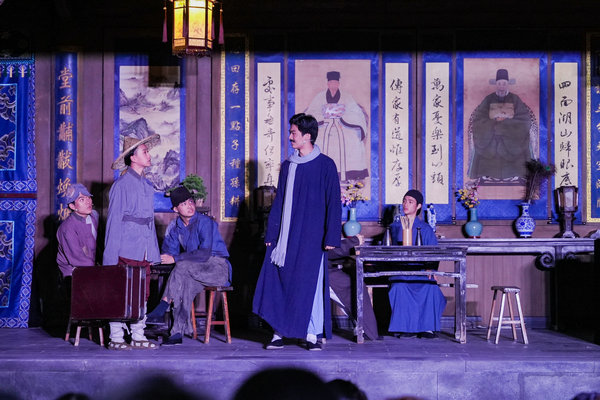 The Golden Sail Art Troupe originated from the campus drama club of the Beijing Haidian District Teacher Continuing Education School. In 2012, the school became the "Theater Education Base" of the Beijing People's Art Theater, receiving coaching and training from this top theater group in China. On March 28, the students performed a show titled Xianheng Hotel, which features characters from the works of Chinese writer Lun Xun (1881-1936), including Sister Xianglin, Kong Yiji, and Run Tu. A director, a lighting designer, and a stage manager from the Beijing People's Art Theater accompanied the students in creating and rehearsing this performance.