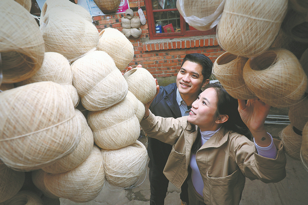 Ivan Andrew Chen, a Rongchang xiabu craftsman from India, and his Chinese wife Tang Yi, check materials. ZOU FEI/FOR CHINA DAILY