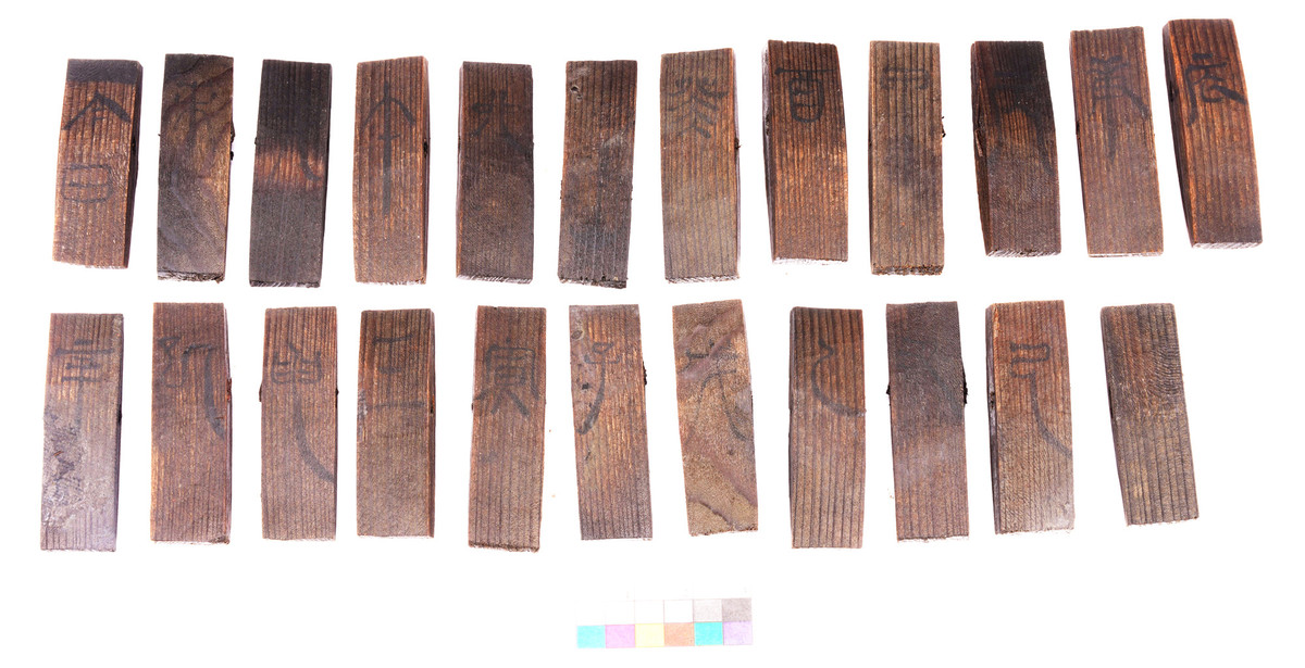 Wooden tablets inscribed with ganzhi (sexagenary cycle) unearthed from the Guankou No 1 tomb [Photo provided to chinadaily.com.cn]